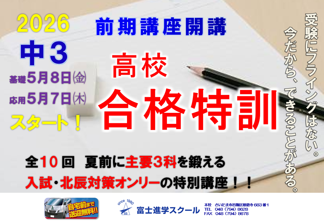「受験に強い」富士進の特訓コースを通常授業と併せて受講することをお勧めします。